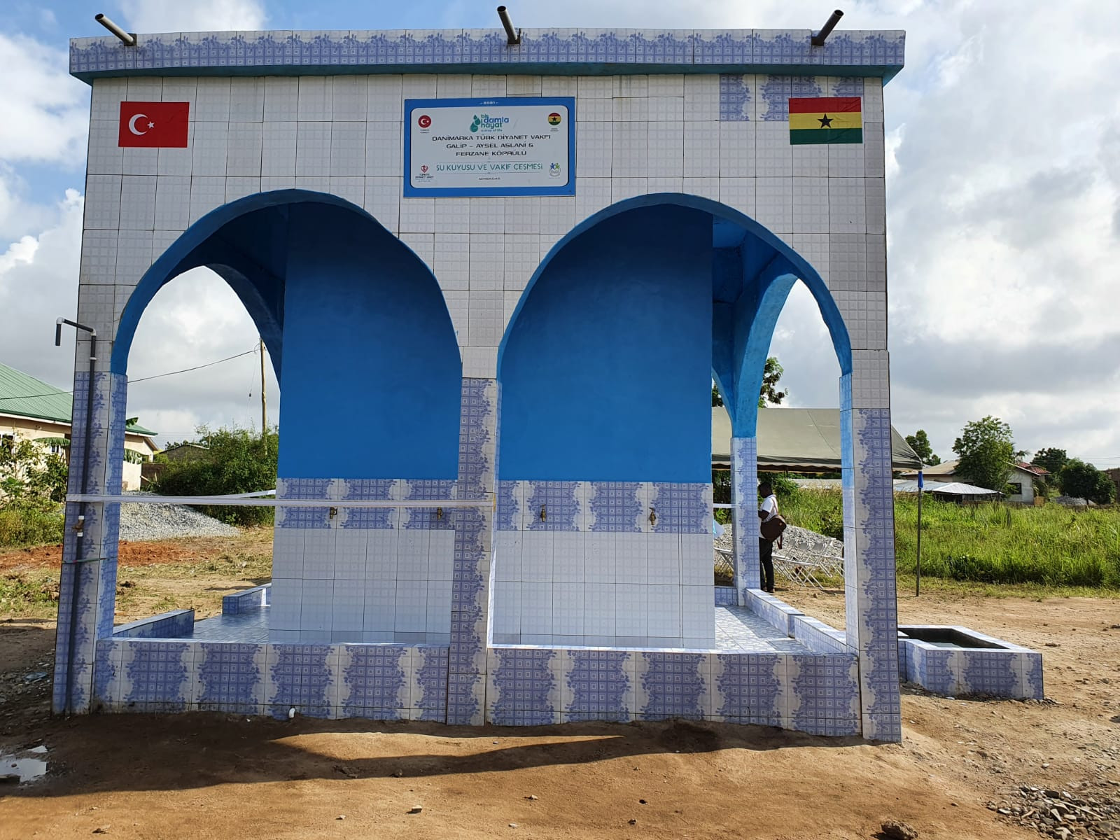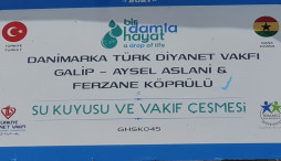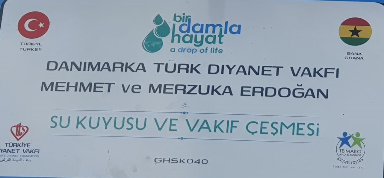 Bir Damla Hayat projesi kapsamında Gana'nın Pomidon ve Kutunse bölgerinde Vakfımız tarafından yaptırılan su kuyuları açıldı. Mehmet&Merzuka Erdoğan, Ferzane Köprülü ve Galip&Aysel Aslan ailelerinin katkıları ve Danimarka'da yaşayan kardeşlerimzin bağışları ile yapılan 60 m derinliğindeki su kuyuları, bölgede yaşayan yaklaşık 10.000 kişinin temiz içme suyu ihtiyacını karşılayacak.